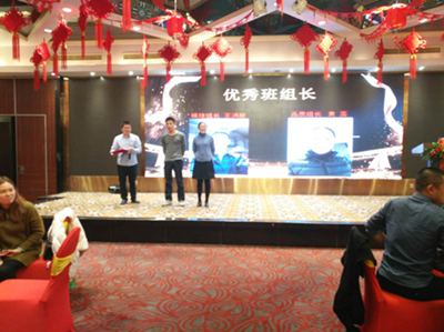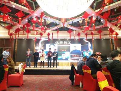然后活動(dòng)進(jìn)入宴會(huì)環(huán)節(jié)。并在宴會(huì)期間,將優(yōu)秀員工表彰環(huán)節(jié)與幸運(yùn)抽獎(jiǎng)環(huán)節(jié)穿插舉行。首先是在輕松歡快的樂曲聲中,公司董事會(huì)領(lǐng)導(dǎo)來(lái)到每一桌與員工共同舉杯,與員工一起分享收獲的喜悅,送上新年祝福。優(yōu)秀員工表彰環(huán)節(jié),丁總宣布了2018年的優(yōu)秀獎(jiǎng)評(píng)選結(jié)果,優(yōu)秀員工獎(jiǎng)由李大娥、胡俊、丁幼龍、王忠成、胡鵬五位分享,優(yōu)秀班組長(zhǎng)則由王洪獻(xiàn)與袁蕊獲得,公司也對(duì)以上優(yōu)秀代表進(jìn)行了祝賀與表彰,贏得了全廠員工的熱烈掌聲和歡呼聲。