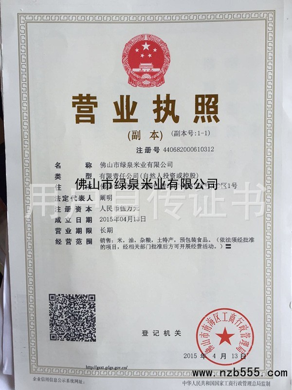 | 發(fā)證機(jī)構(gòu): | 佛山市南海區(qū)工商行政管理局 | 發(fā)證時間 : | 2015-04-13 |