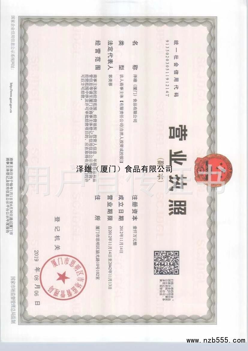 首頁(yè) > 榮譽(yù)資質(zhì) > 澤雄(廈門(mén))食品有限公司