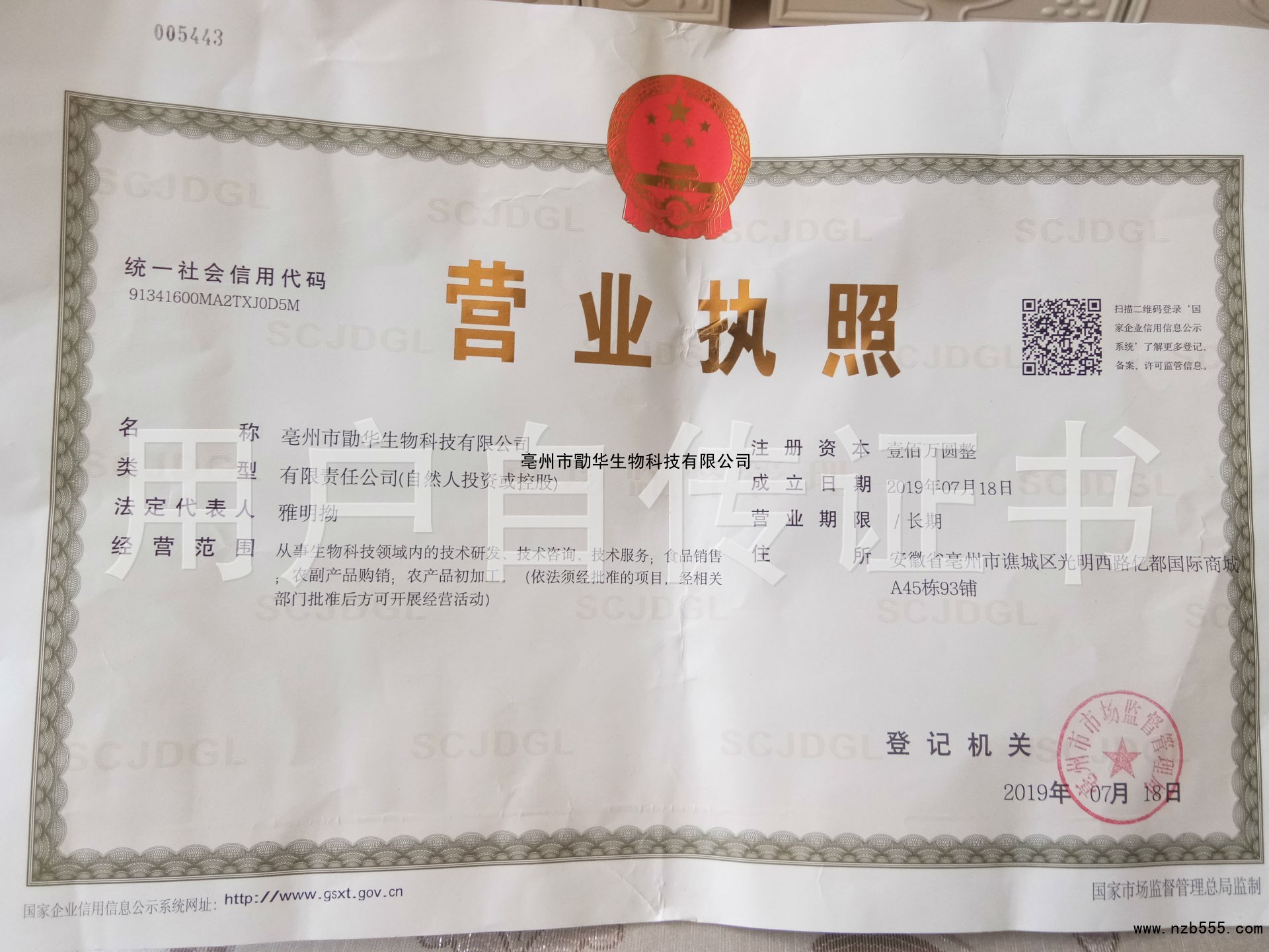 榮譽(yù)資質(zhì) 毫州市勖華生物科技有限公司