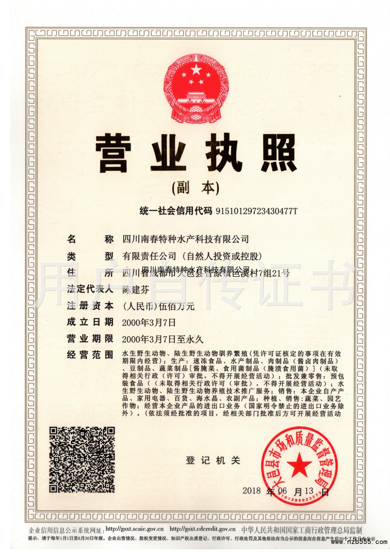 首頁 > 榮譽(yù)資質(zhì) > 四川南春特種水產(chǎn)科技有限公司