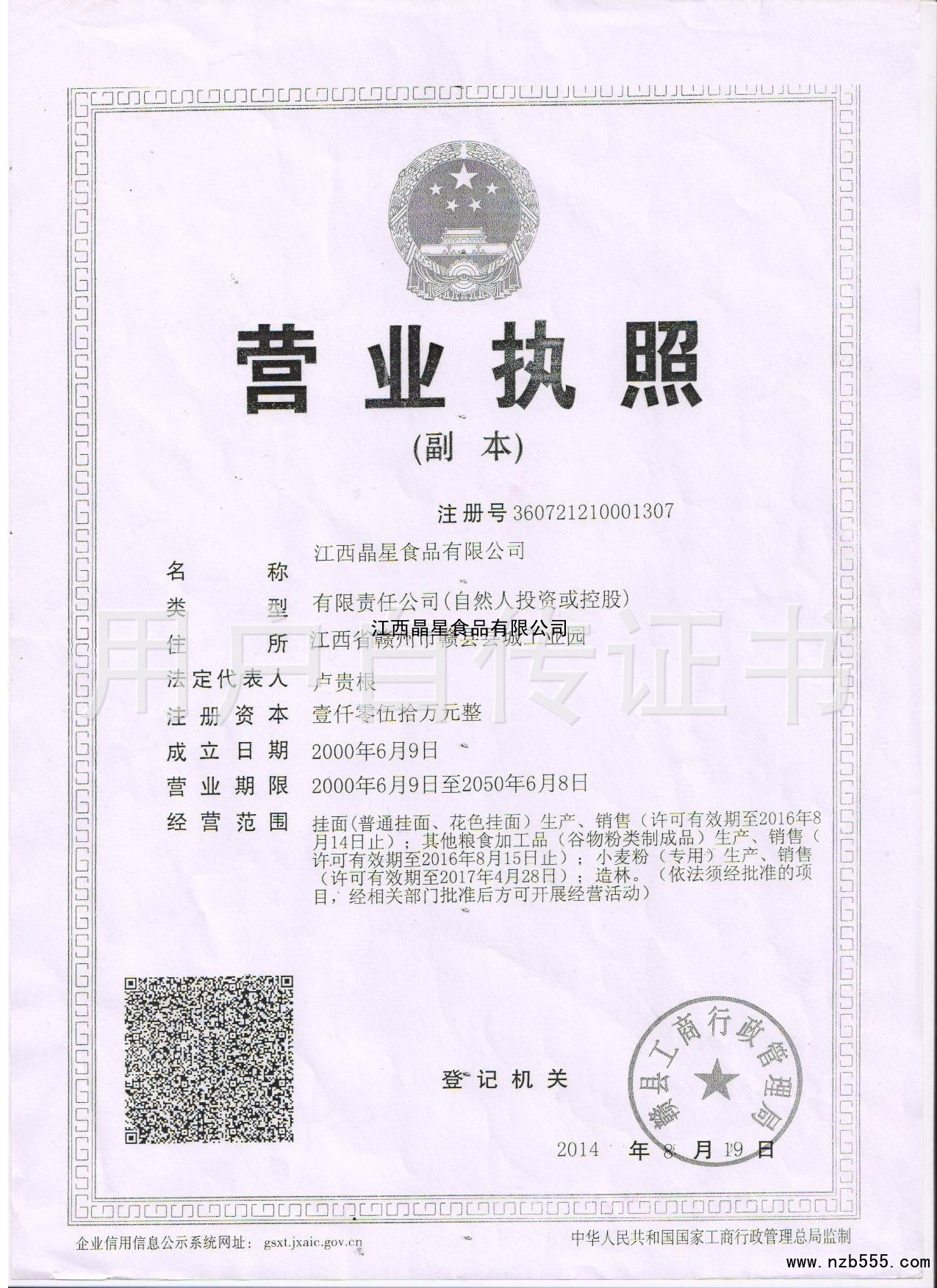 | 發(fā)證機(jī)構(gòu): | 贛縣工商行政管理局 | 發(fā)證時(shí)間 : | 2014-08-19 |