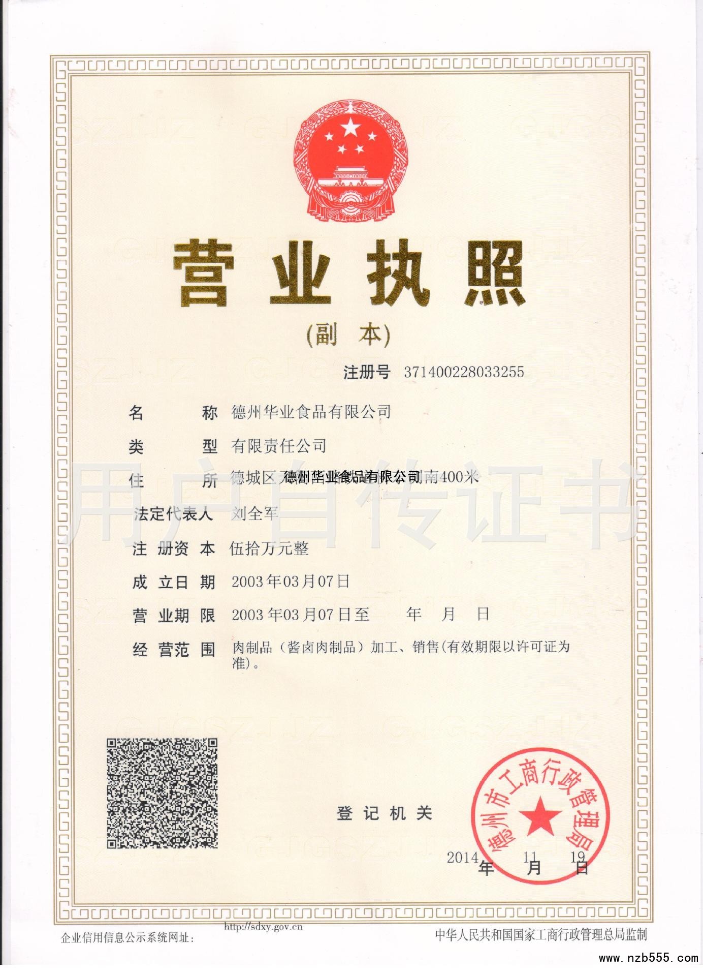 榮譽(yù)資質(zhì) 德州華業(yè)食品有限公司